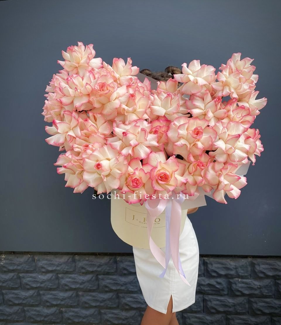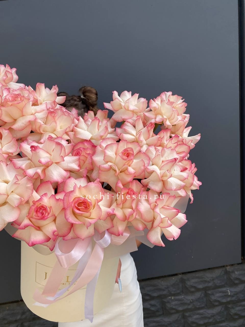 Для заказа товара "31 французская роза Джумилия в боксе" с доставкой в Ижевске нажмите в корзину