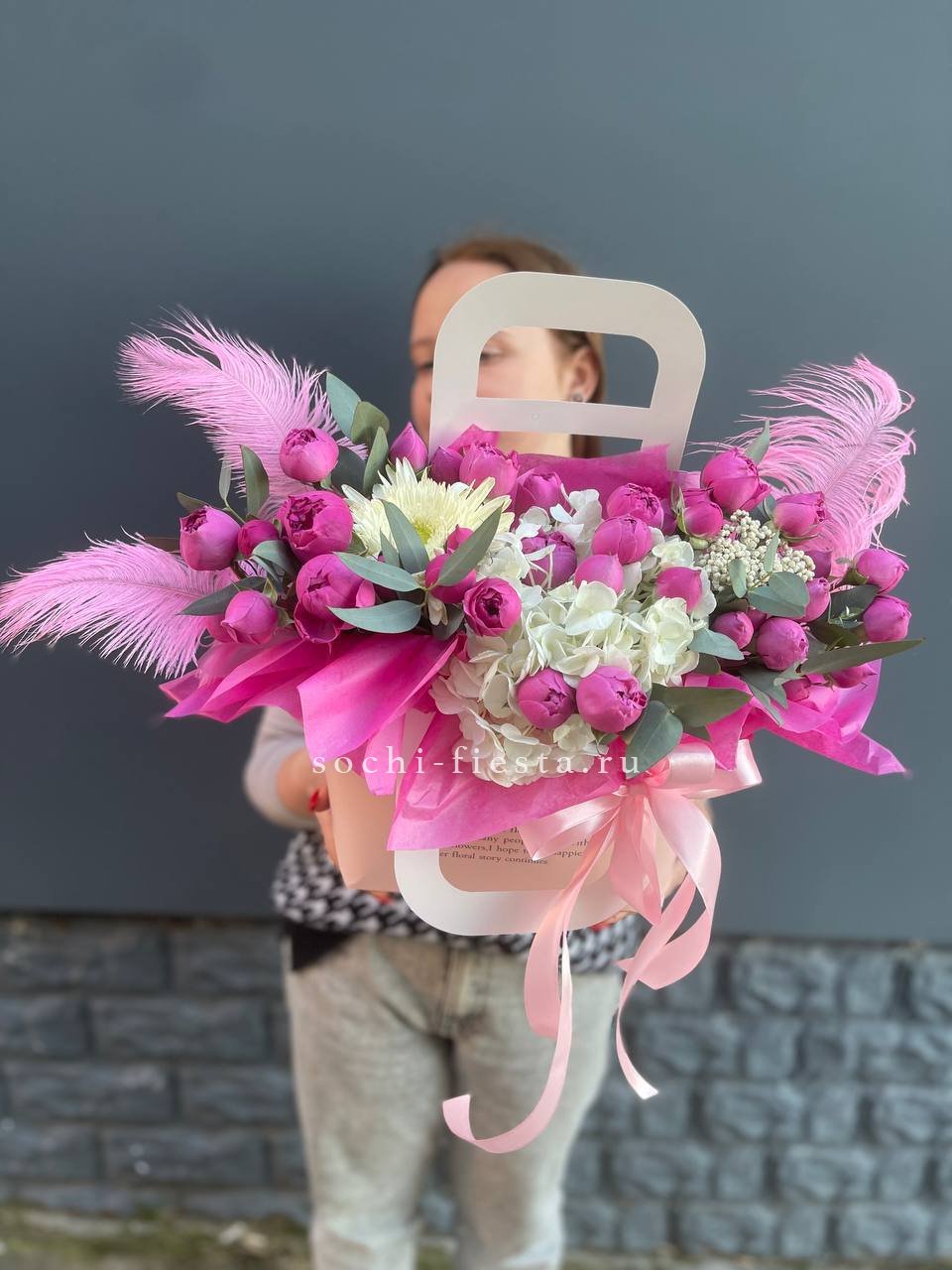 гортензия - 5 шт., лента, дизайнерская упаковка.