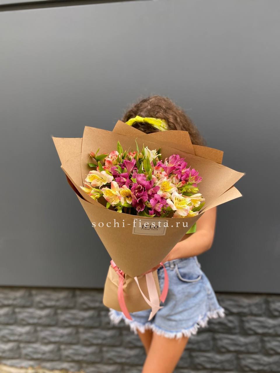 альстромерии - 9 веток, лента, крафт.