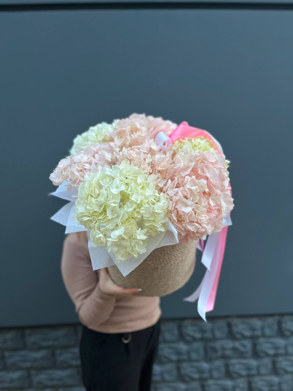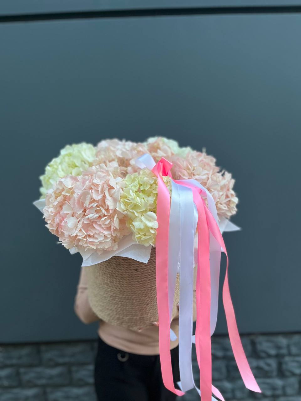 гортензия 15 шт., лента, дизайнерская упаковка.