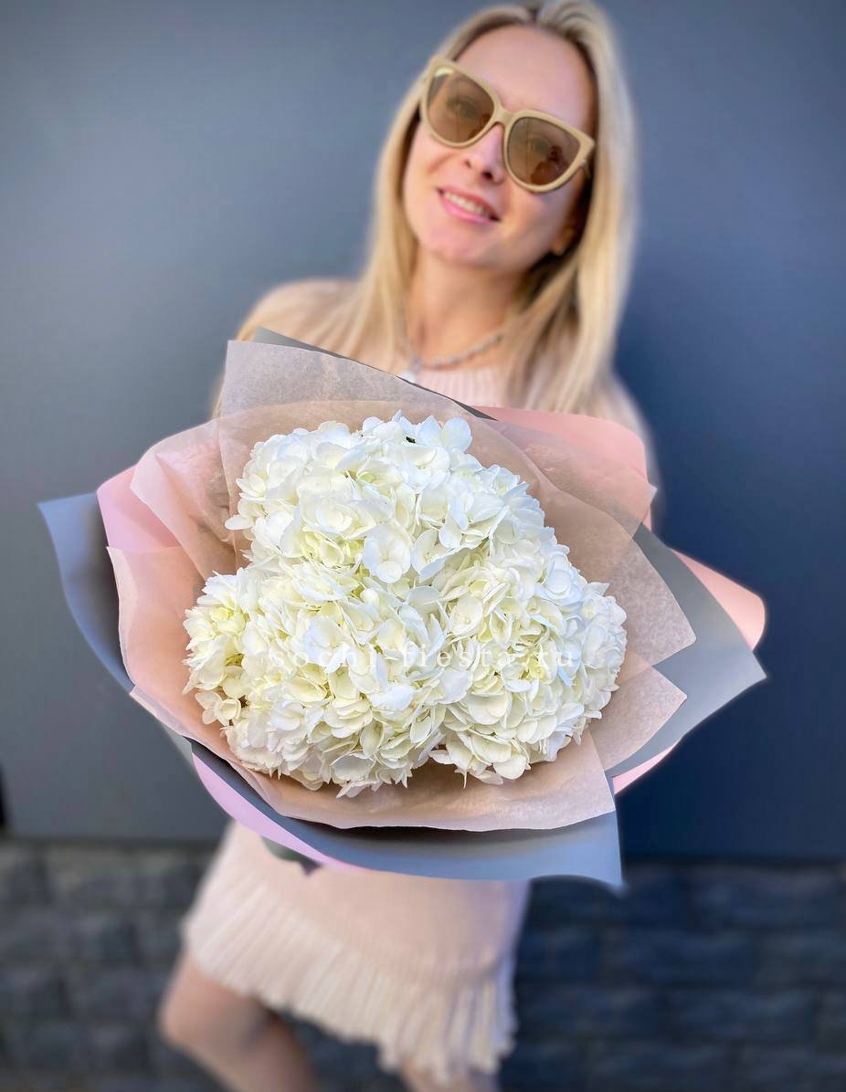 Для заказа товара "Букет из трёх белых гортензий" с доставкой в Ижевске нажмите в корзину