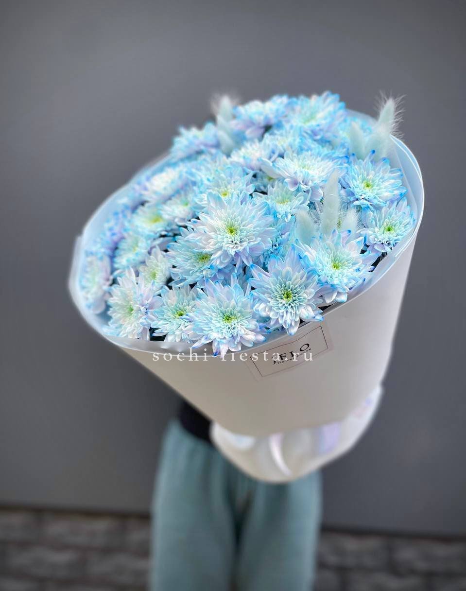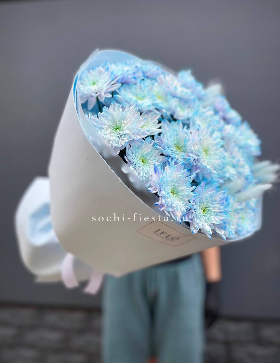 хризантемы Бигуди - 5, стифа (аналог по сезону),  лента, дизайнерская упаковка.