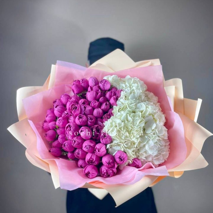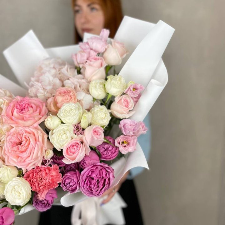 • Редкий состав — David Austin, ранункулюс, анемоны, сезонные пионы.