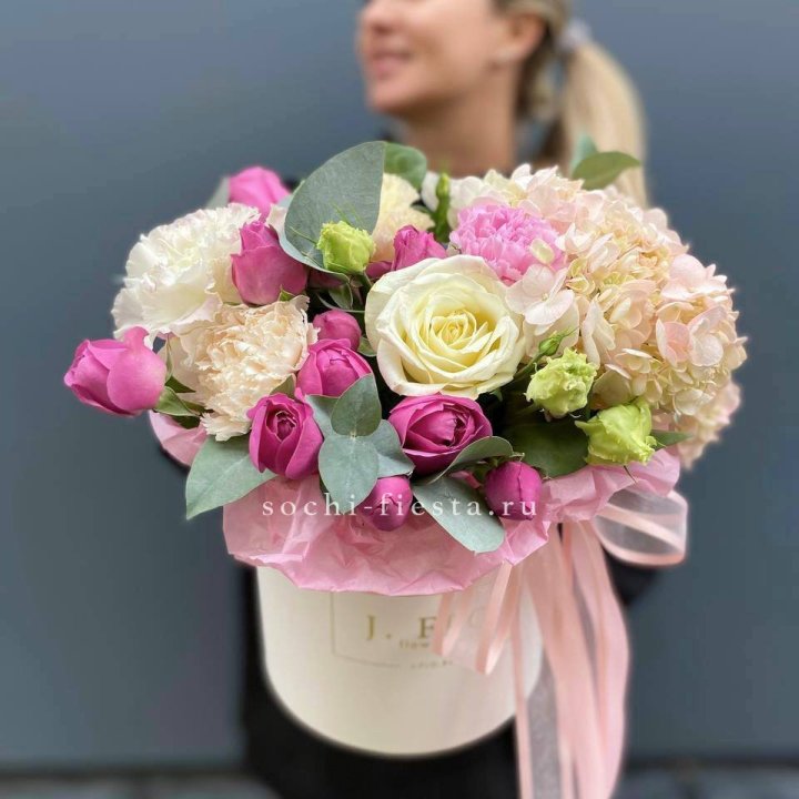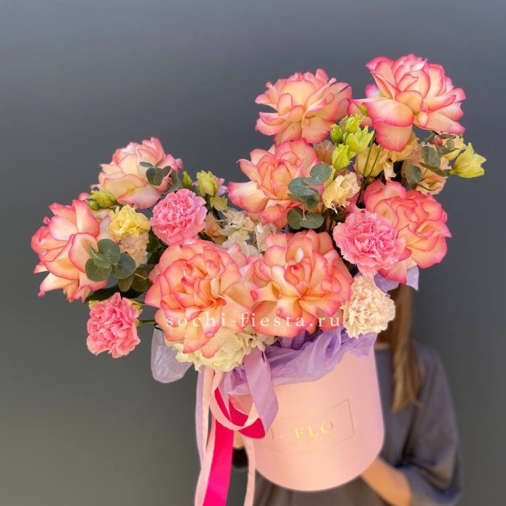 шляпная коробка с розами для студии флористики в Ижевске