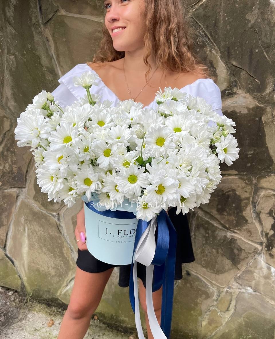 Композиция в коробке объединяет пышную гортензию, воздушную эустому и кустовые розы, Джумилию с яркими гербами и хлопком. Плотное заполнение создает округлую форму, где каждый цветок находит свое место без пустот.