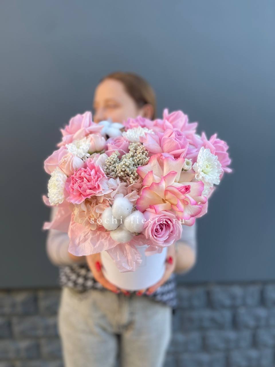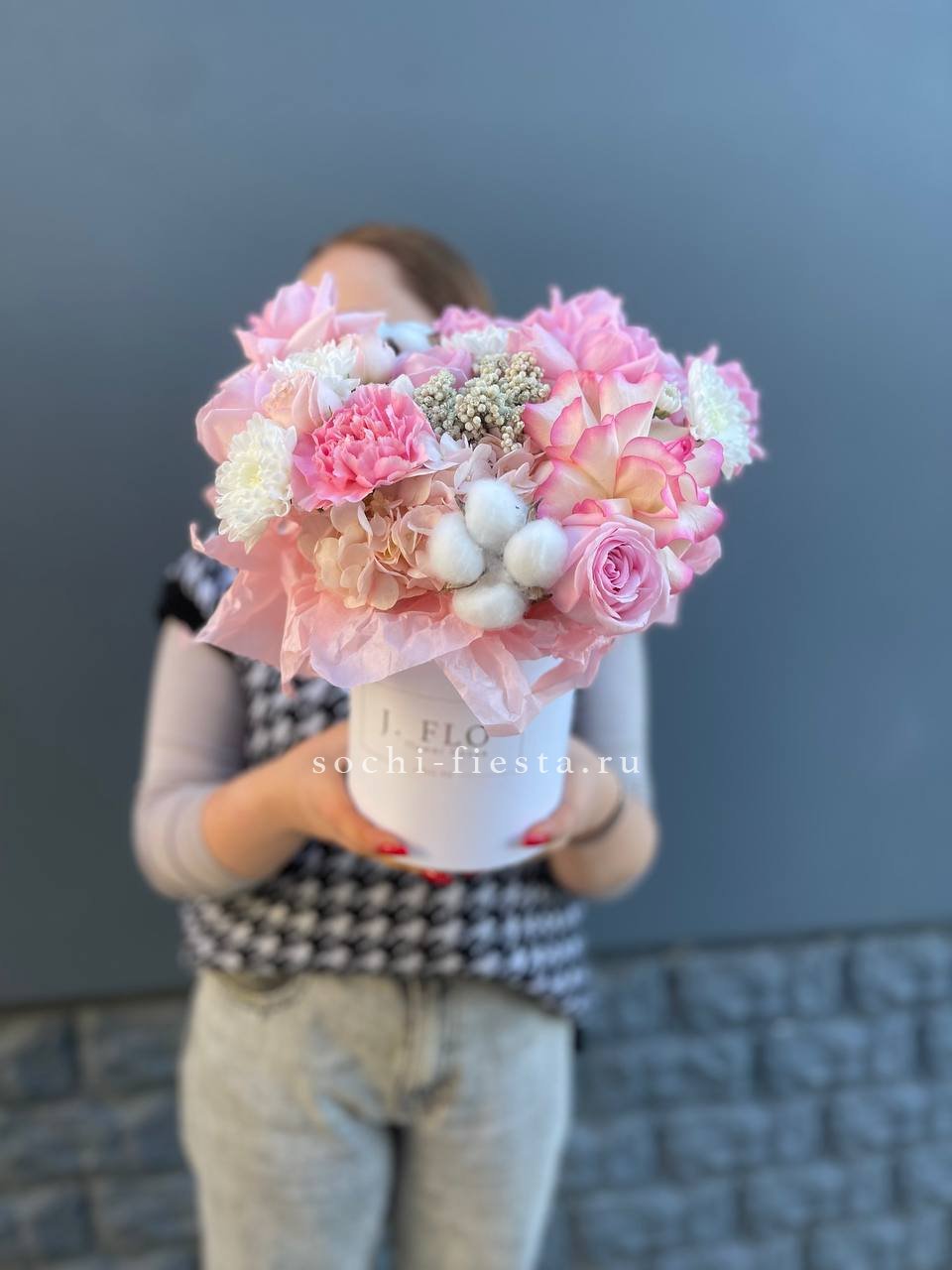 цветочная композиция в нежно-розовых тонах в  цилиндре D25.