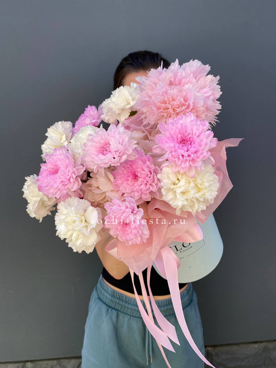 гортензия, диантус, бомбастик, мисти баблс, розы, антиринум, эустома, бокс гигант.
