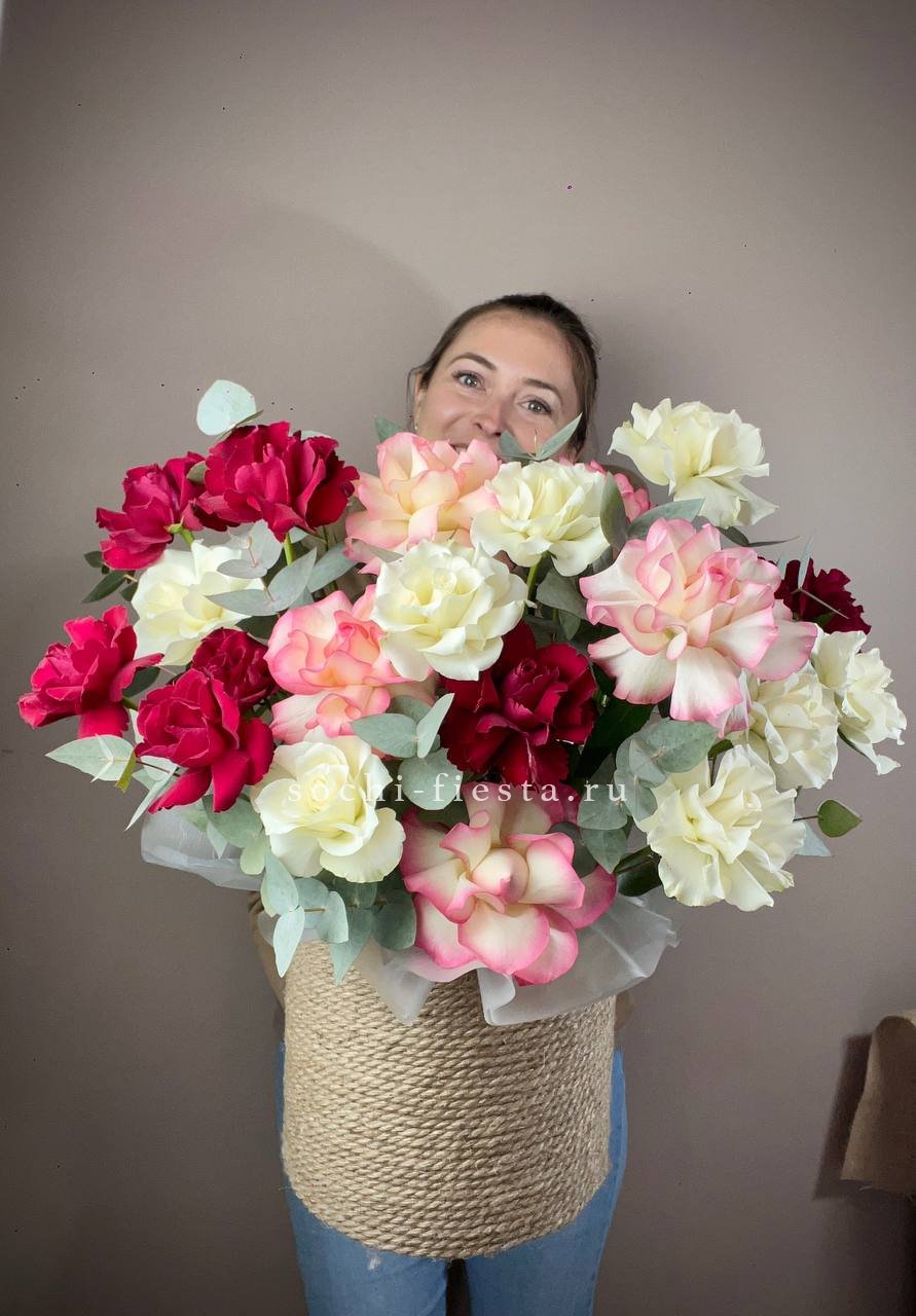 Для заказа товара "35 французских роз микс в джутовом боксе" с доставкой в Ижевске нажмите в корзину