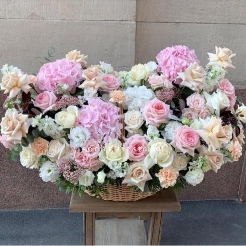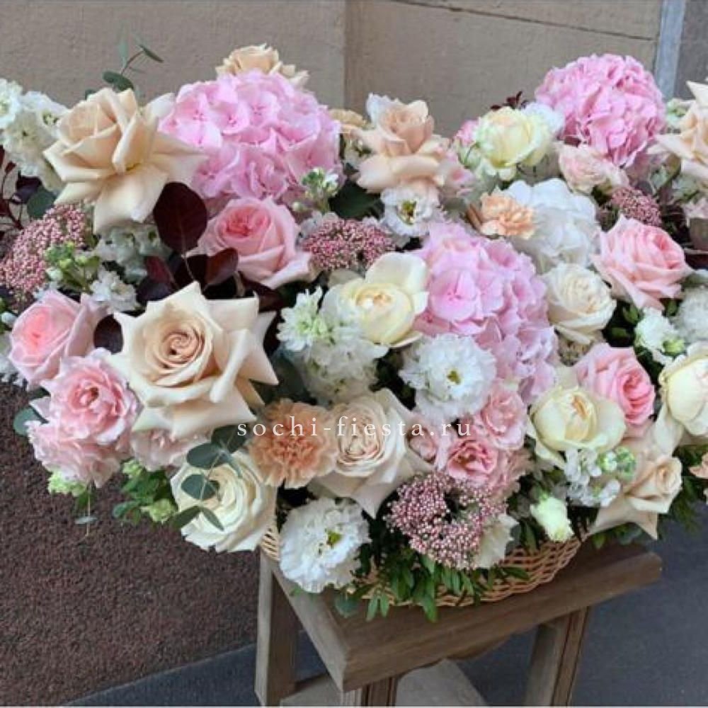 Пятьсот пятьдесят пять роз в корзине с персональной надписью — это целая инсталляция из живых цветов. Объём композиции впечатляет масштабом и создаёт незабываемое визуальное присутствие.