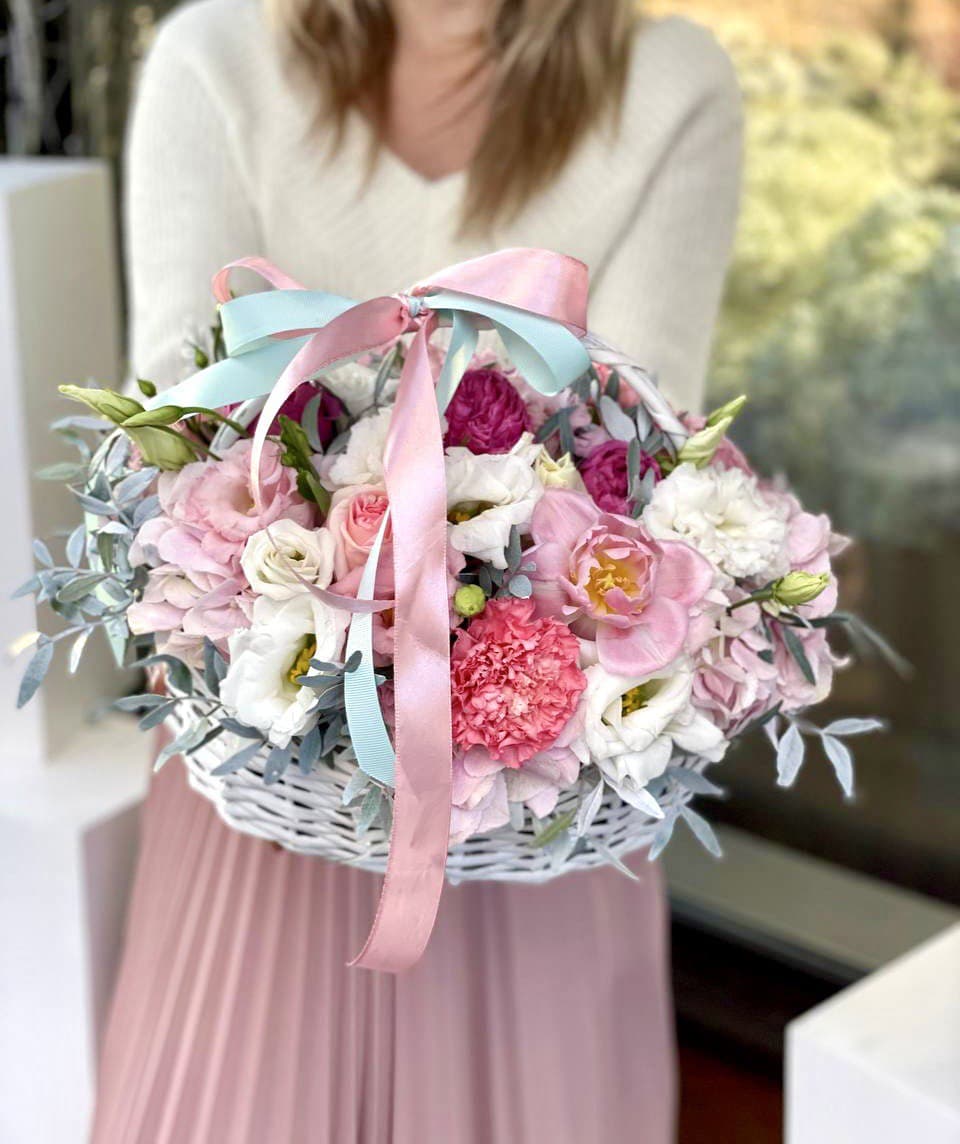 Корзина 555 пионов