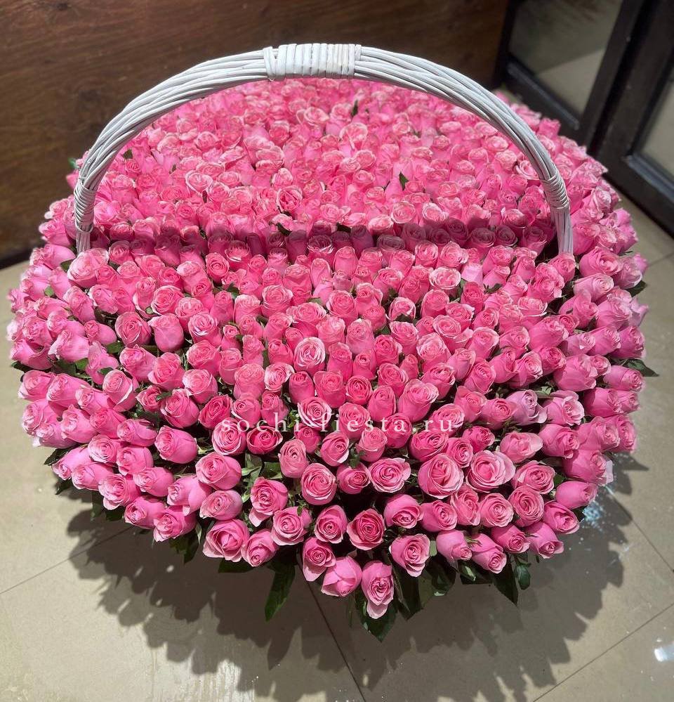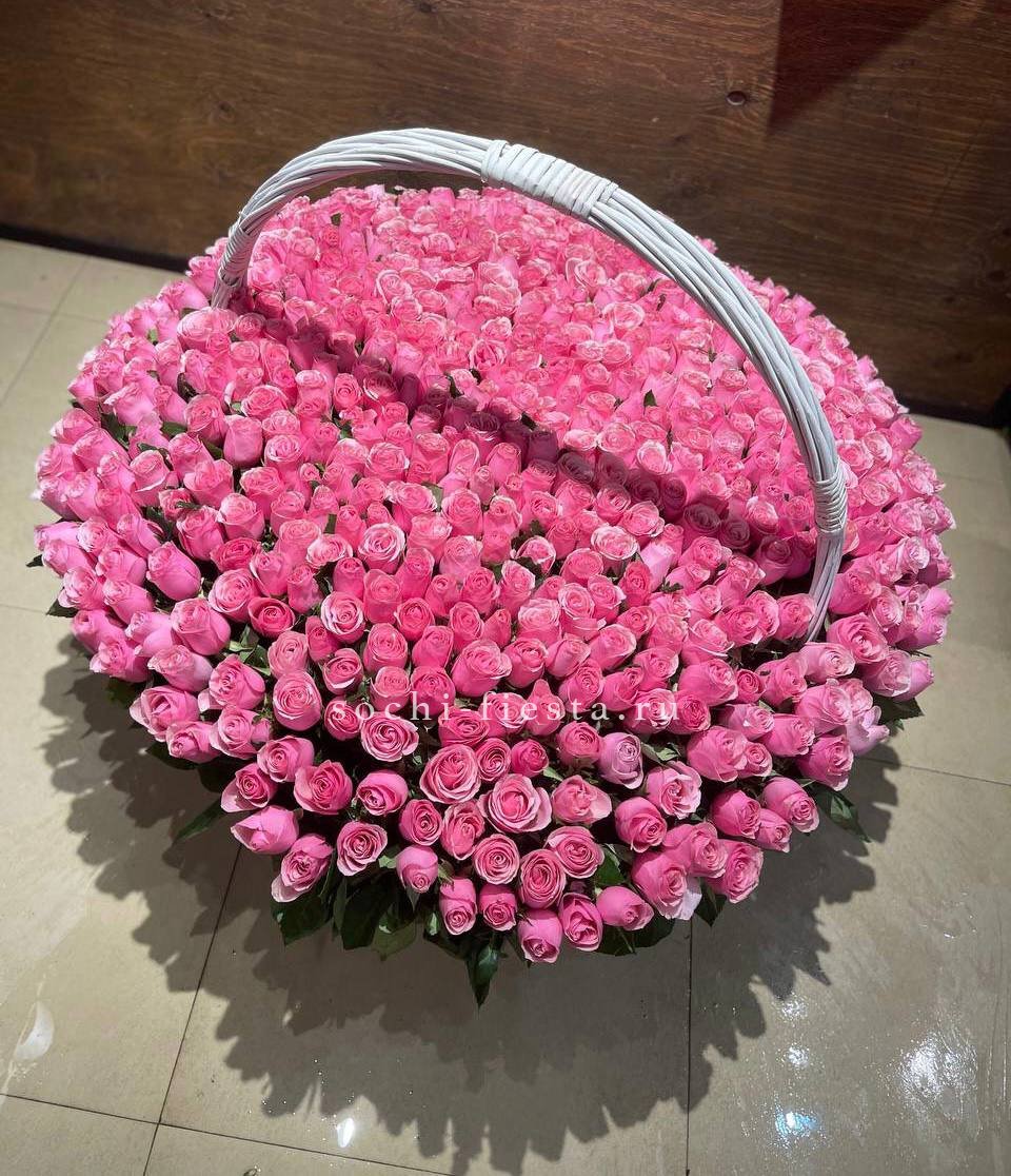 диантус, роза кустовая, гипсофила, гортензия, дельфиниум/львиный зев/маттиола (замена вне сезона), белая роза, георгины или аналог, эвкалипт, оазис, корзина D 25, двойной бант Состав композиции может быть незначительно изменен флористом в процессе изготовления с соблюдением стилистики, фактуры и цветовой гаммы оригинала.