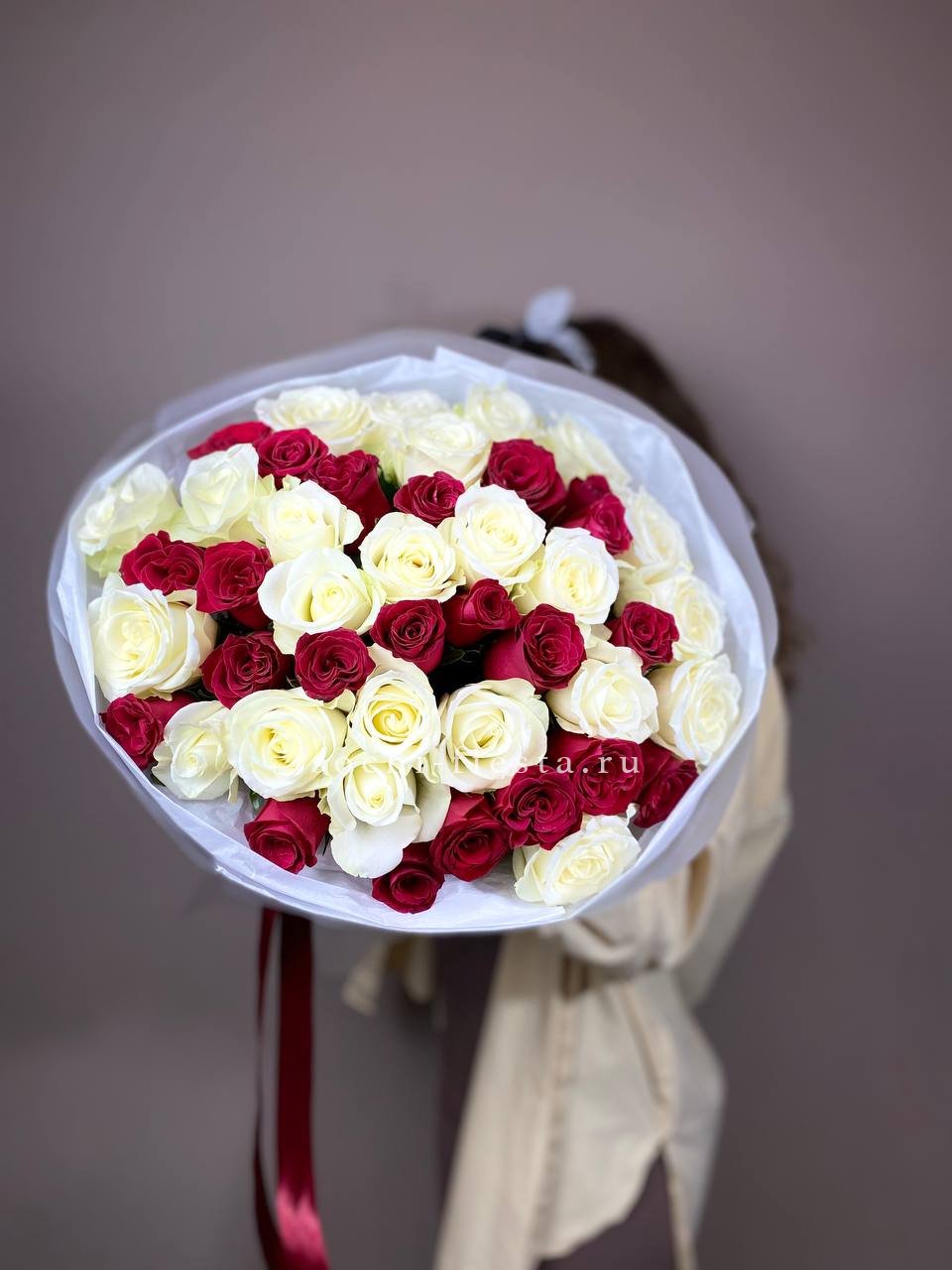 Для заказа товара "Букет из красных белых 45 роз" с доставкой в Ижевске нажмите в корзину