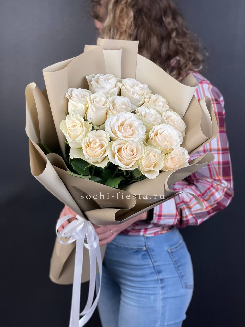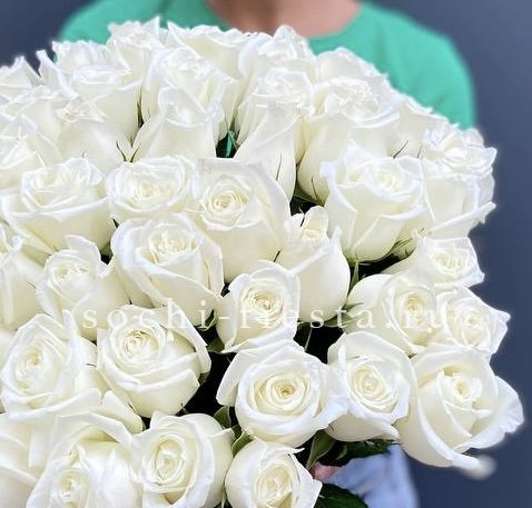 белые розы 35 шт., лента, упаковка на выборВы можете выбрать любое количество.