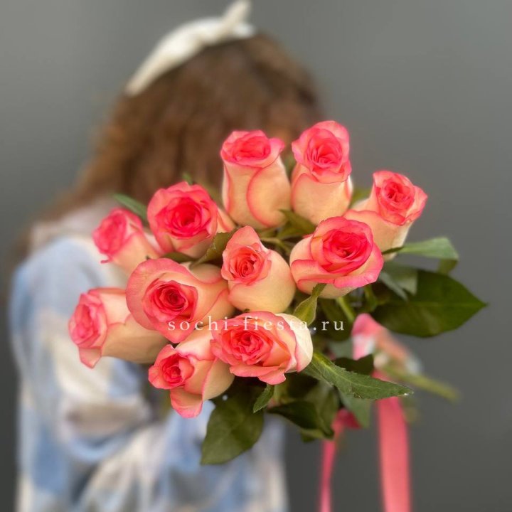 Нежное и в тоже время яркое сочетание персикового и розового цвета данной розы не оставит равнодушной ни одну девушку