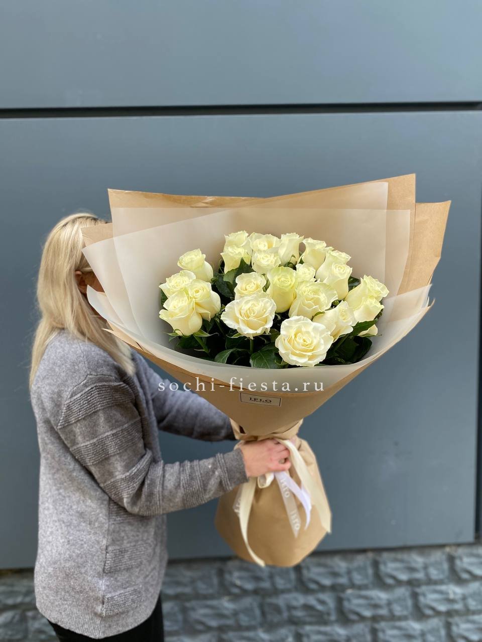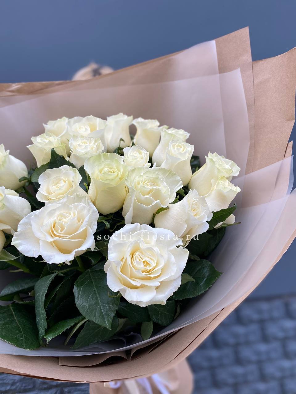 Для заказа товара " Букет высоких белых роз " с доставкой в Ижевске нажмите в корзину