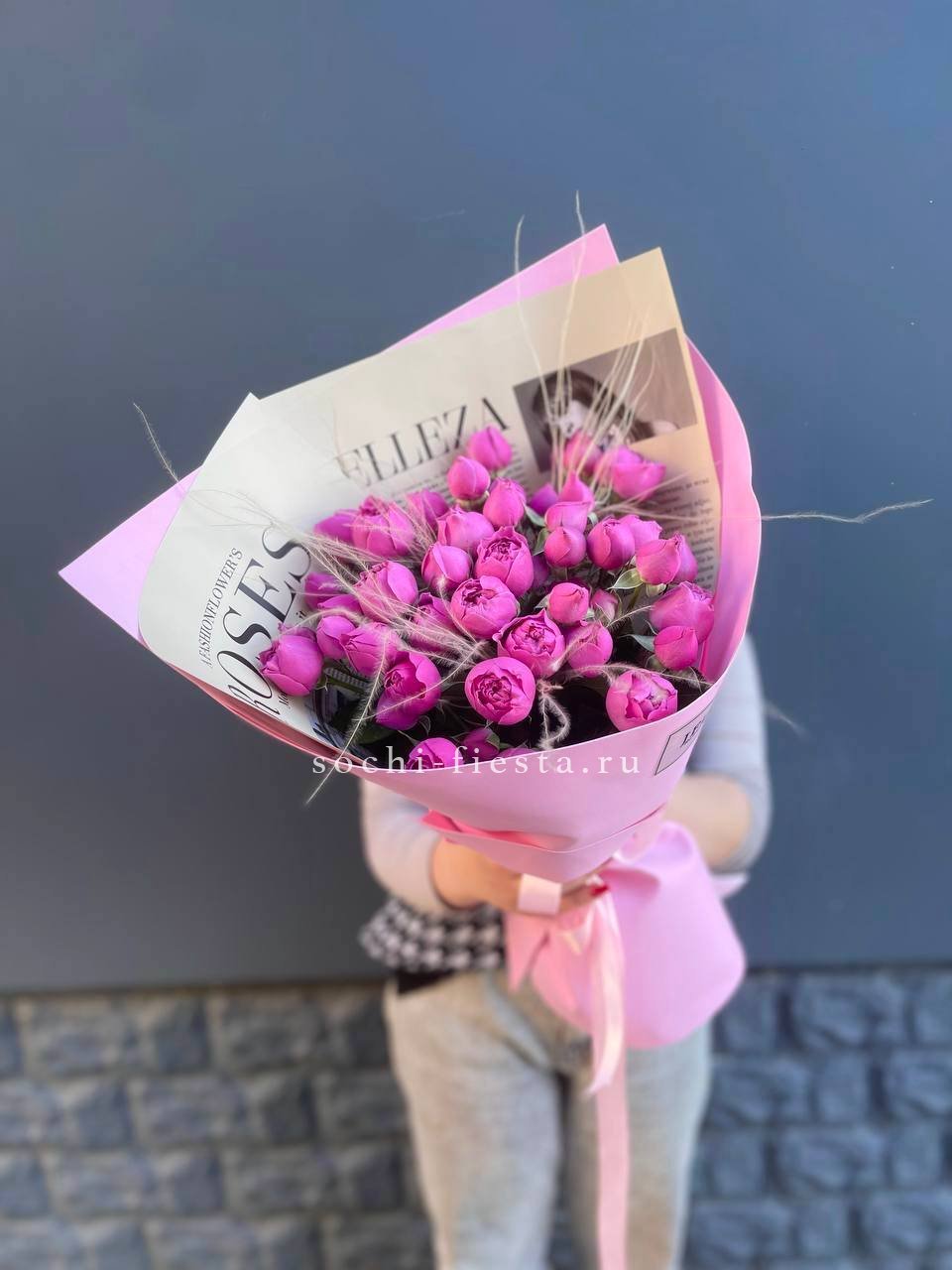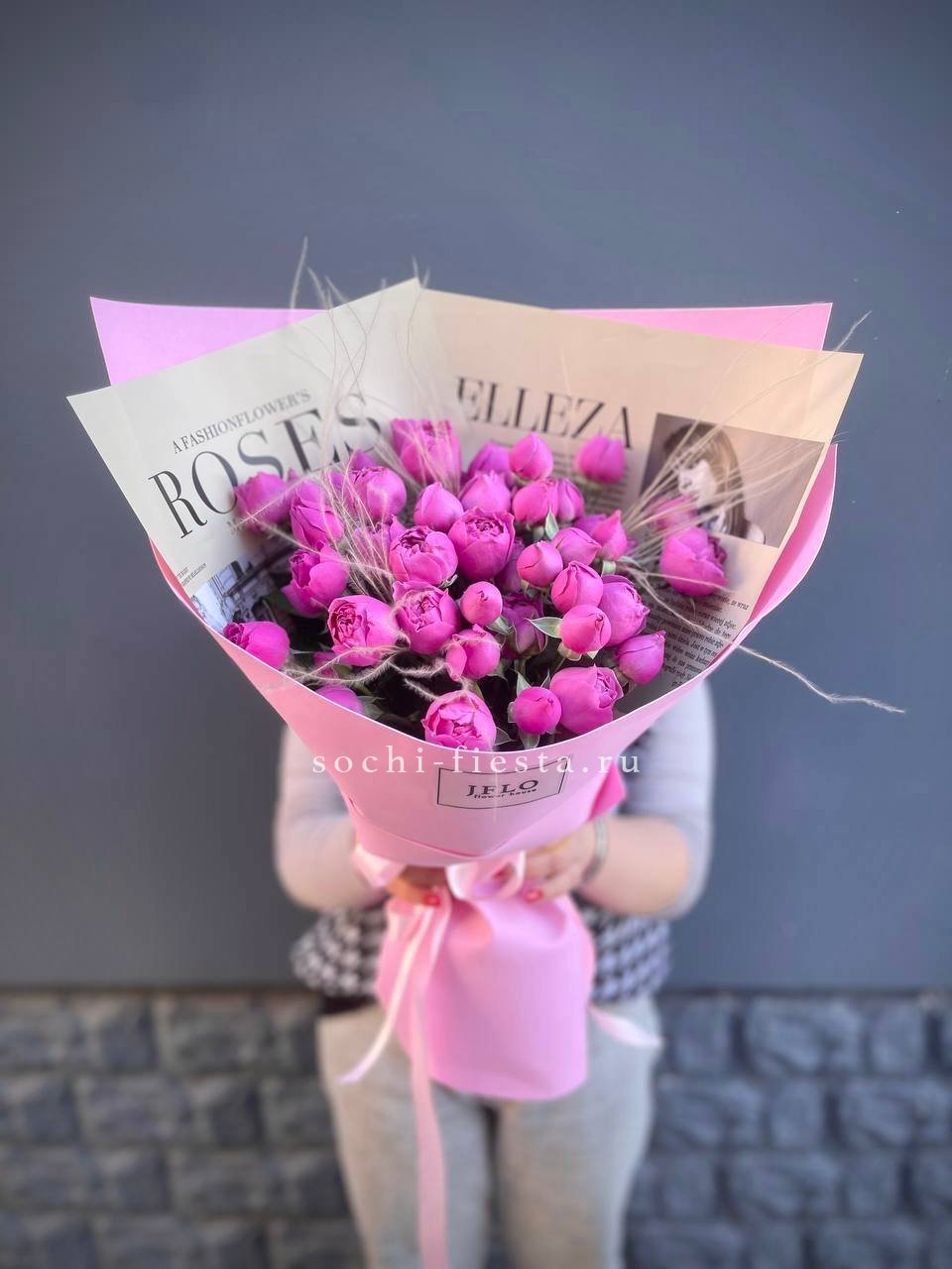 Охапка кустовых роз бомбастик пинк