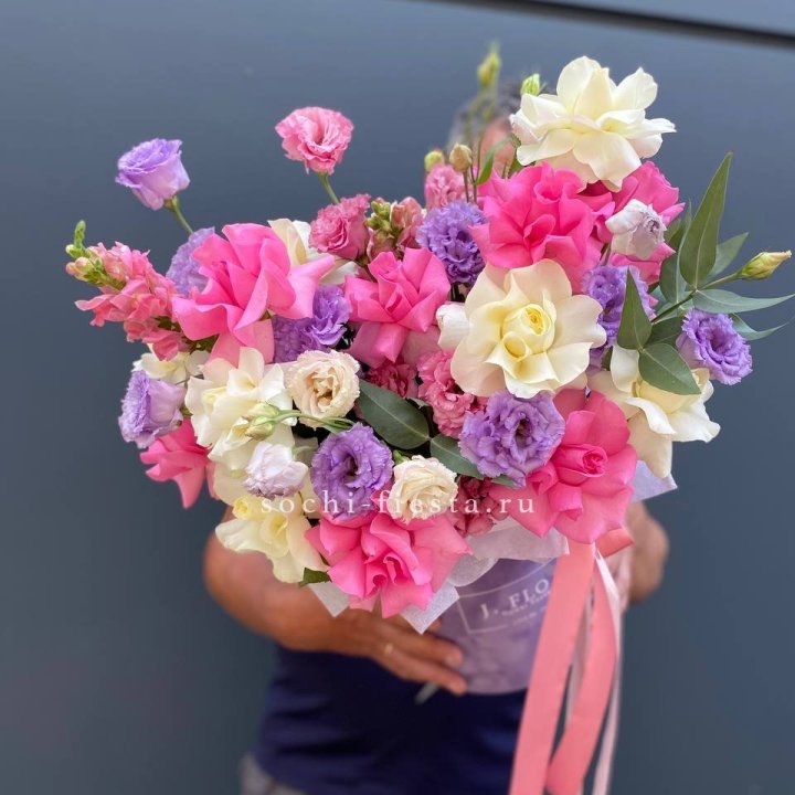 Выписка из роддома — пастельные тона в шляпной коробке. Школьные выпускные — отдельный большой сегмент весной: букеты для учителей, небольшие букеты для выпускников.