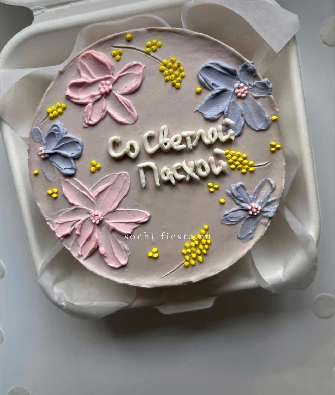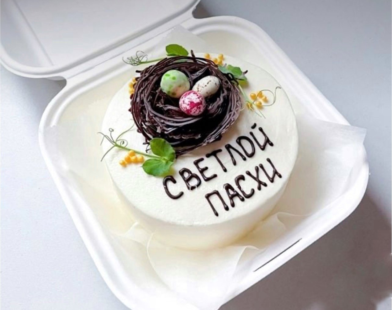 Миниатюрный торт с яркой надписью и домашним теплом в каждом слое. Крем держит форму, а бисквит остается влажным благодаря небольшому объему и свежести выпечки.